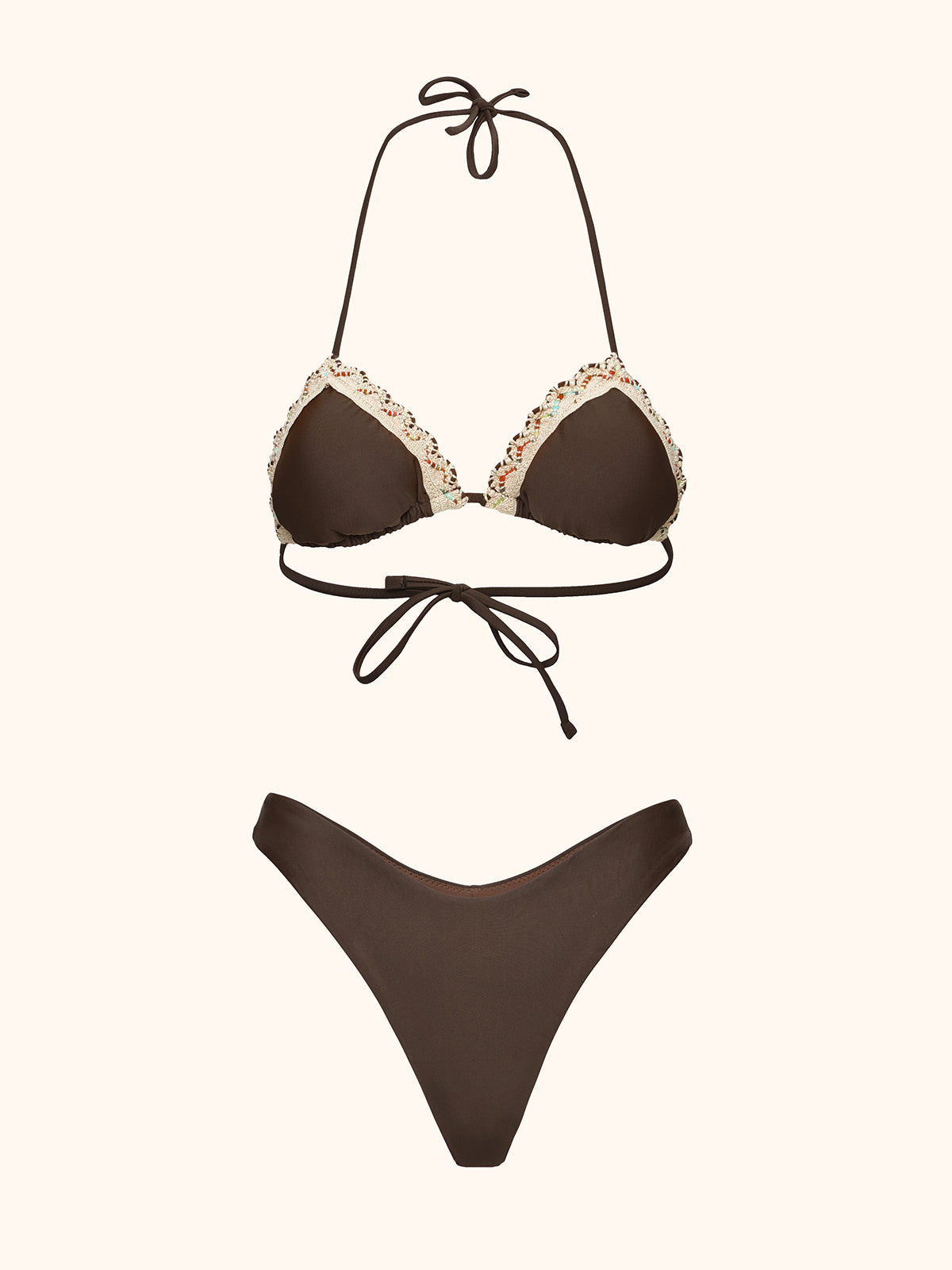 Women's Bikinis Me Fui Triangle with Brown Fixed American Brief SW0430-BN